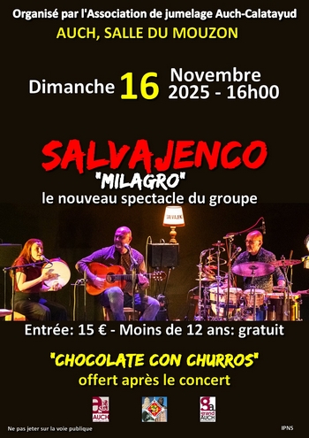 Chocolate con churrrosPoour son traditionnel "Chocolate con churros" l'AJAC a invité SALVAJENCO. Son concert sera suivi du moment convivial de dégustation du "chocolate con churros".